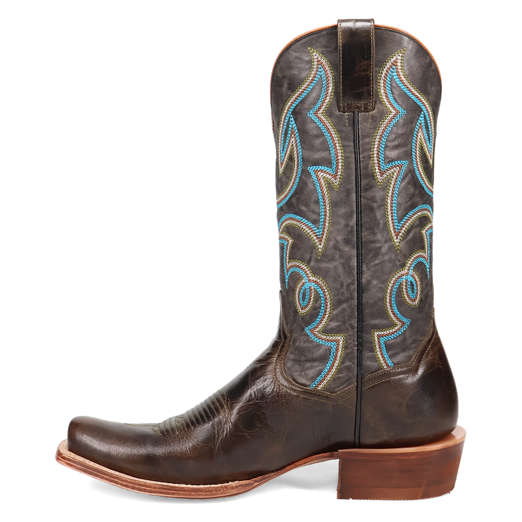 Embrace your free-spirited side with the Freeman leather boot. This chocolate brown beauty is elevated with eccentric accents in green, burgundy, and blue, making each pair uniquely vibrant. Featuring a removable Soft Strike orthotic for unbeatable comfort, a sleek 7 toe, and a classic cowboy heel, the Freeman boot effortlessly blends bold style with practical elegance. Perfect for those who dare to stand out and tread their own path.