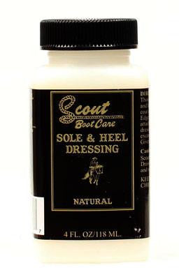 Clean the sole and heel edges of your boots thoroughly. Apply a thin coat of Scout Sole & Heel Edge Dressing using the attached dauber. While it is still wet, wipe off any excess and allow to dry. 4oz with dauber.