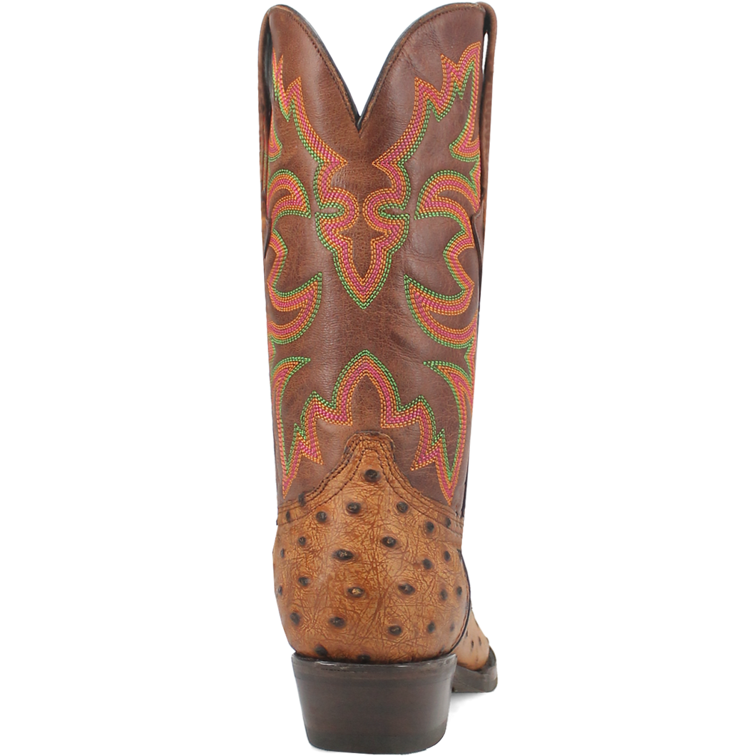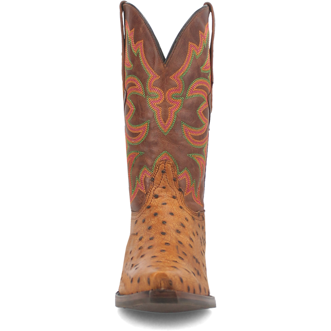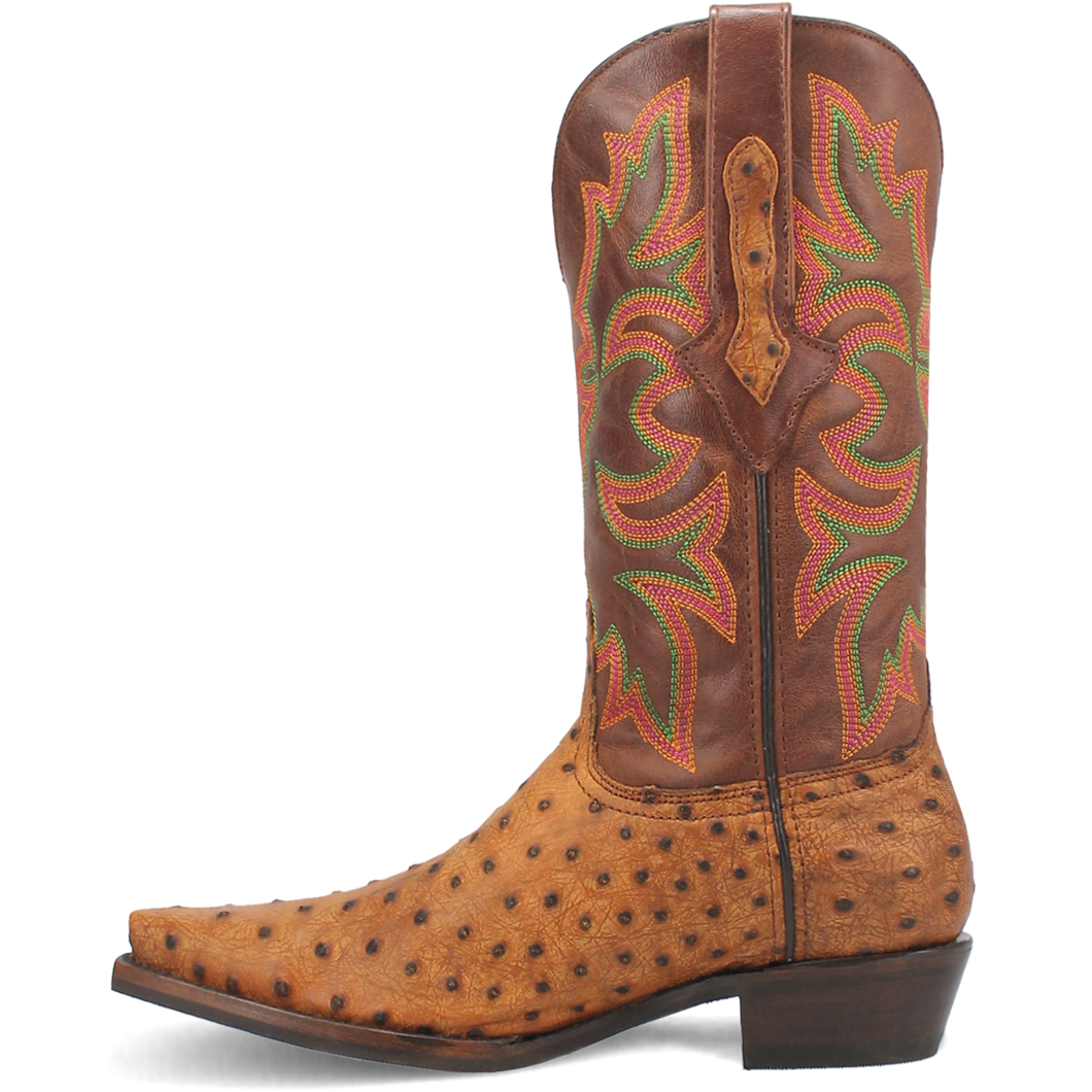 Dingo Outlaw Tan Ostrich Print Snip Toe Boots for Men