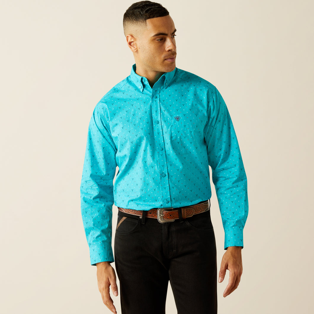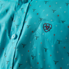 Ariat Willke Classic Fit Turquoise Steer Skull Print Button-Down Shirt for Boys