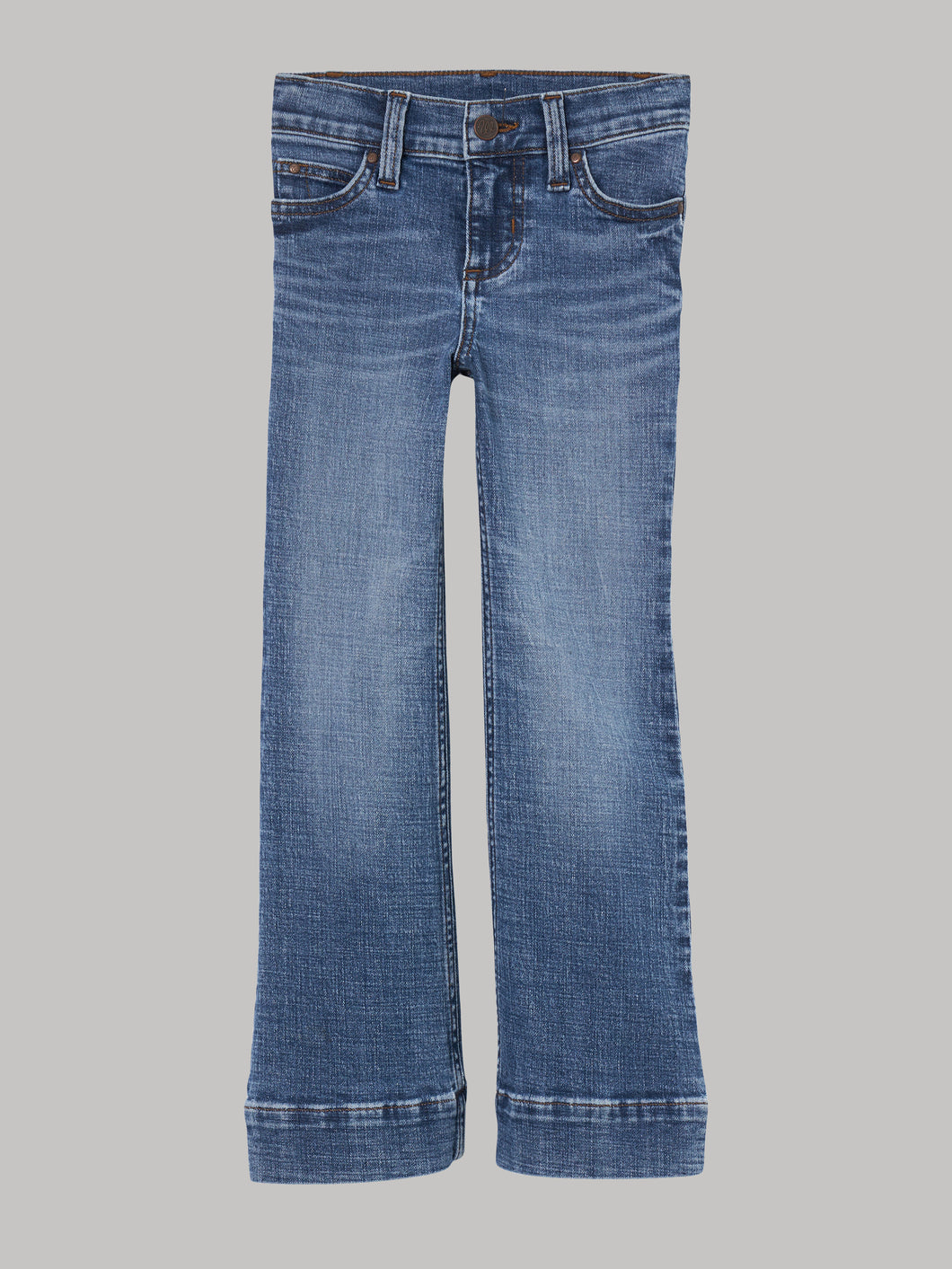 From Wrangler's collection of styles for children, the Wrangler® girls' trouser features plenty of style in an everyday staple made to keep her comfortable all day long. The adjust-to-fit waistband (in sizes 4-6X) is designed to suit her needs by helping her get her perfect fit, even as she grows. Hip pocket embroidery, classic five-pocket styling, and a trouser leg opening that's slightly wider than a bootcut offer an authentic style she'll want to wear every day of the week.