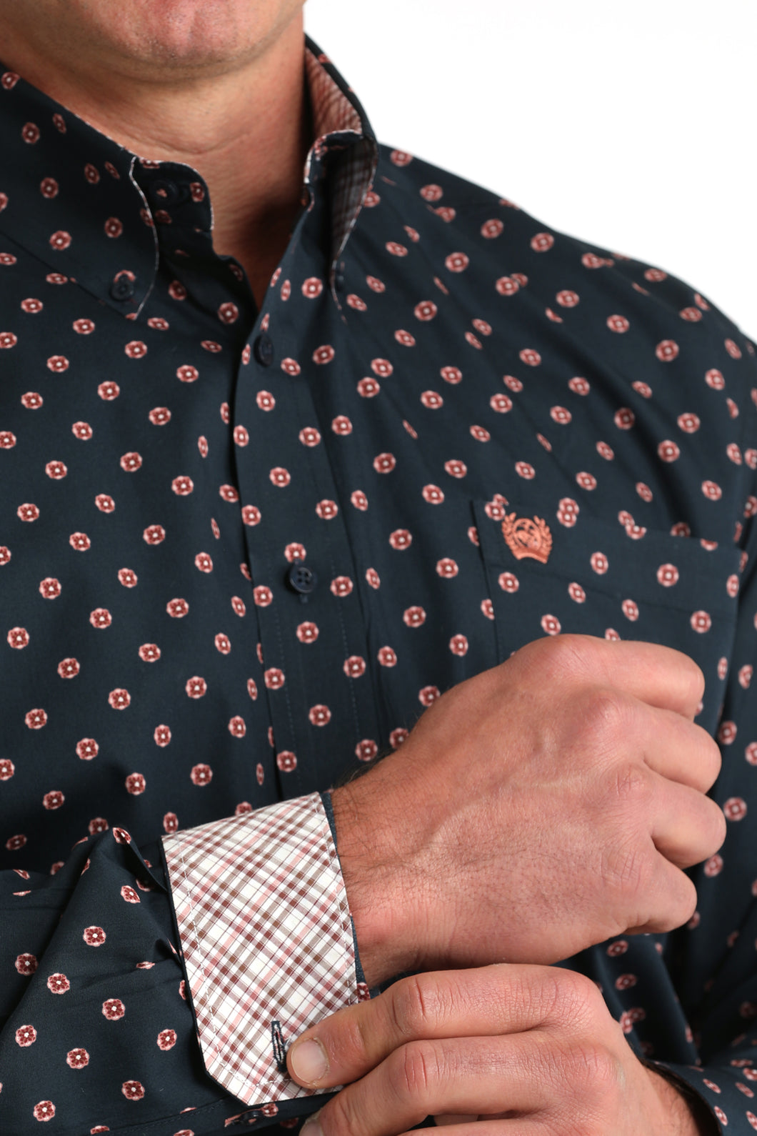 Cinch Men's Dark Navy Geometric Print Button-Down Shirt