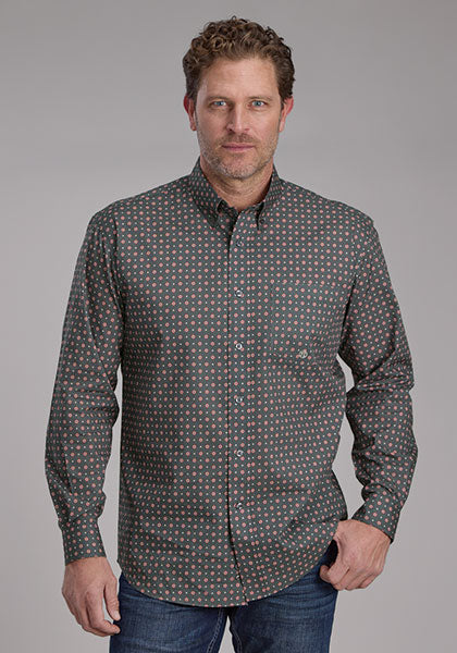 Roper Apparel Men's Grey Sangria Foulard Print Button-Down Shirt