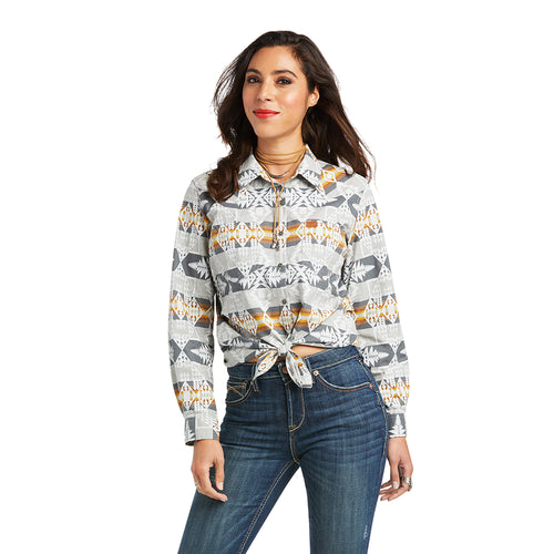 Ariat Kirby Turquoise Geometric Print Stretch Button-Down Blouse for Women