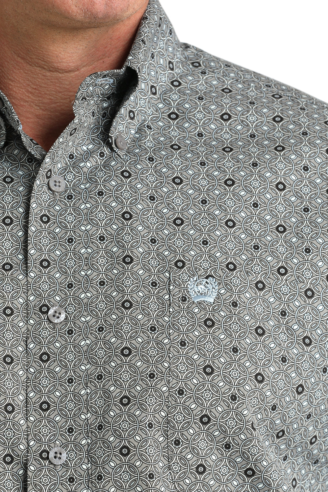 Cinch Men's Gray Geometric Print Button-Down Shirt
