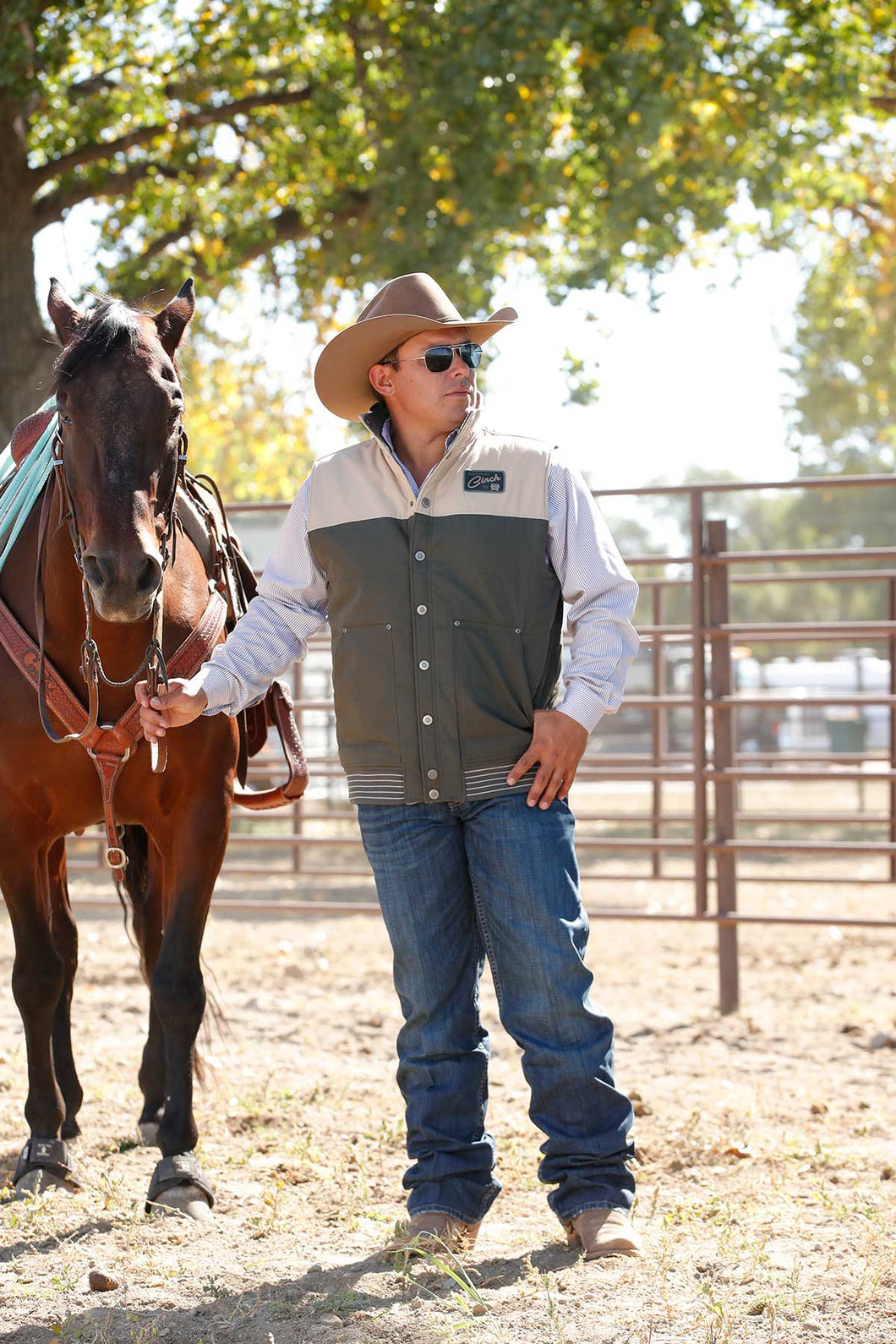 Look no further for your next three-season outerwear workhorse! This olive reversible quilted vest is warm, protective, and designed to make a style statement. Cotton jacquard and poly-cotton wax coated canvas construction features dual hand pockets, a woven CINCH logo patch, and Durable Water Resistant (DWR) finish.