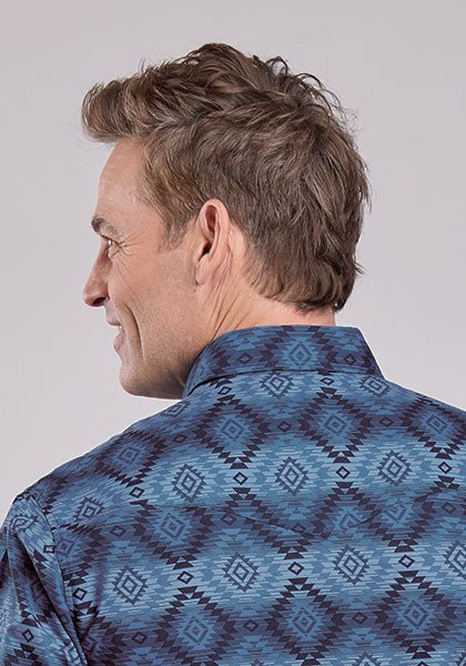 Men's Roper Blue Aztec Serape Print Snap Western Shirt