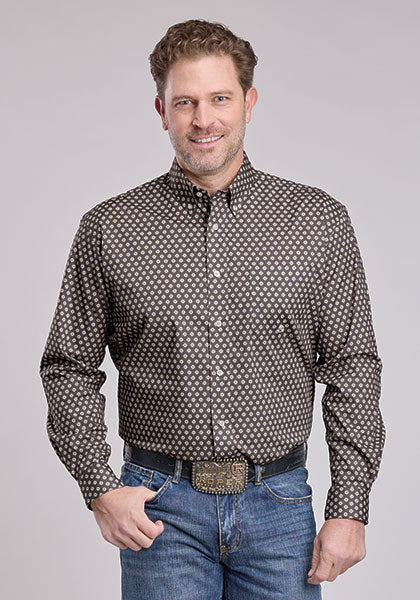 Roper Apparel Men's Amarillo Collection Grey Geometric Print Stretch Button-Down Shirt