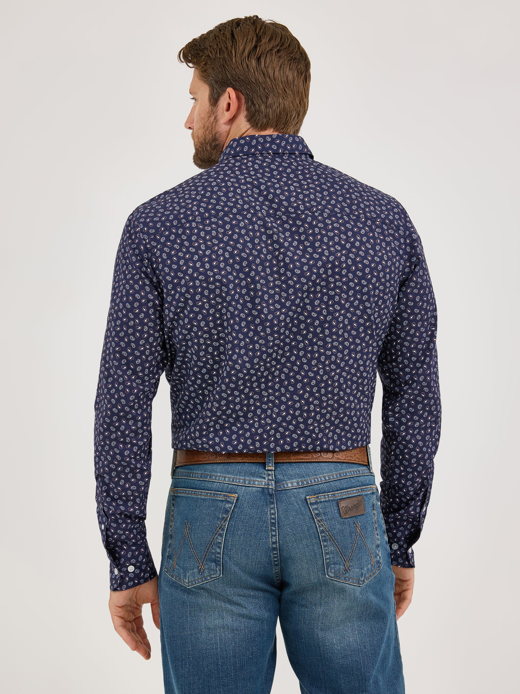 Wrangler Cody Johnson Collection Navy Paisley Print Button-Down Shirt for Men