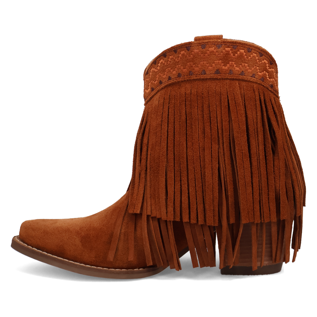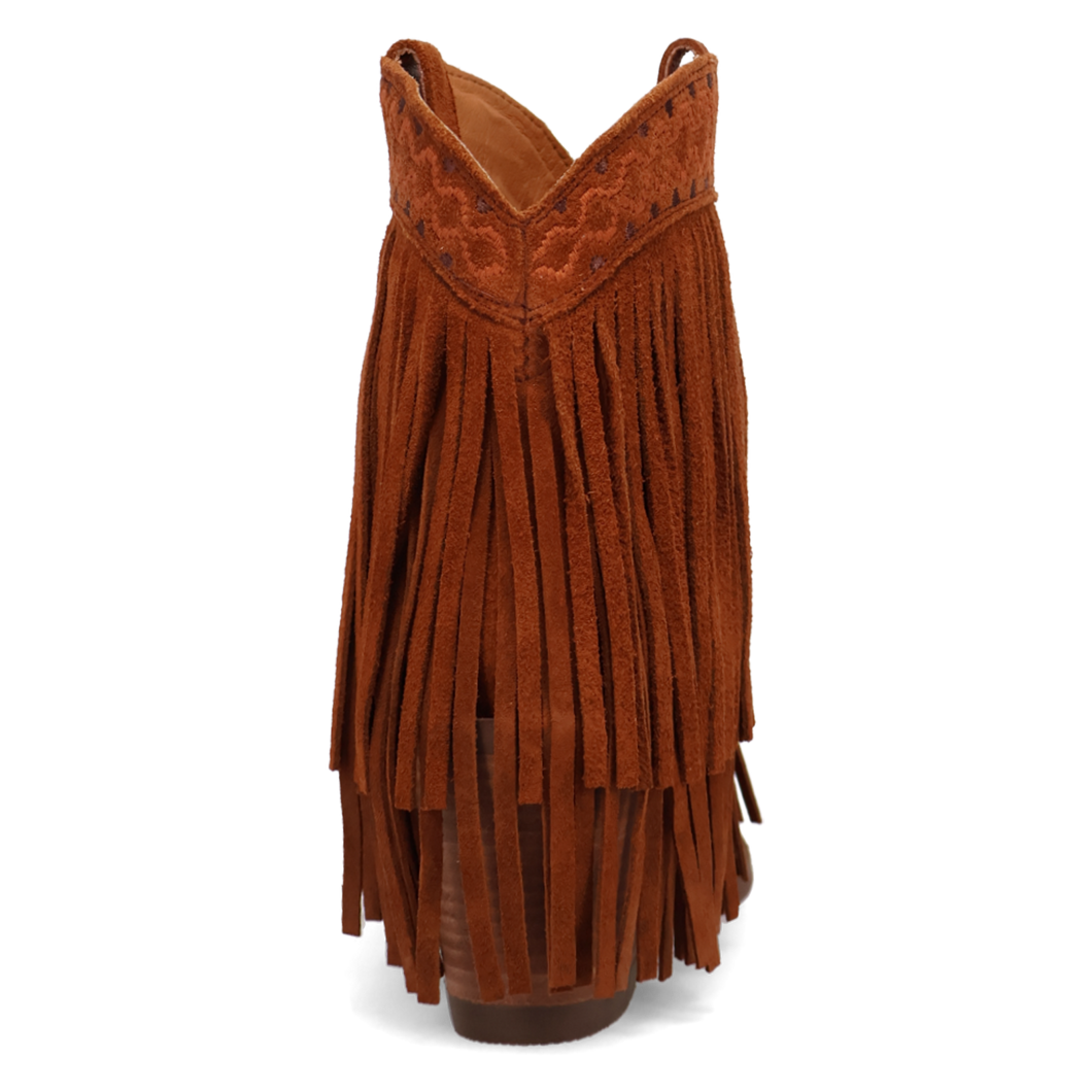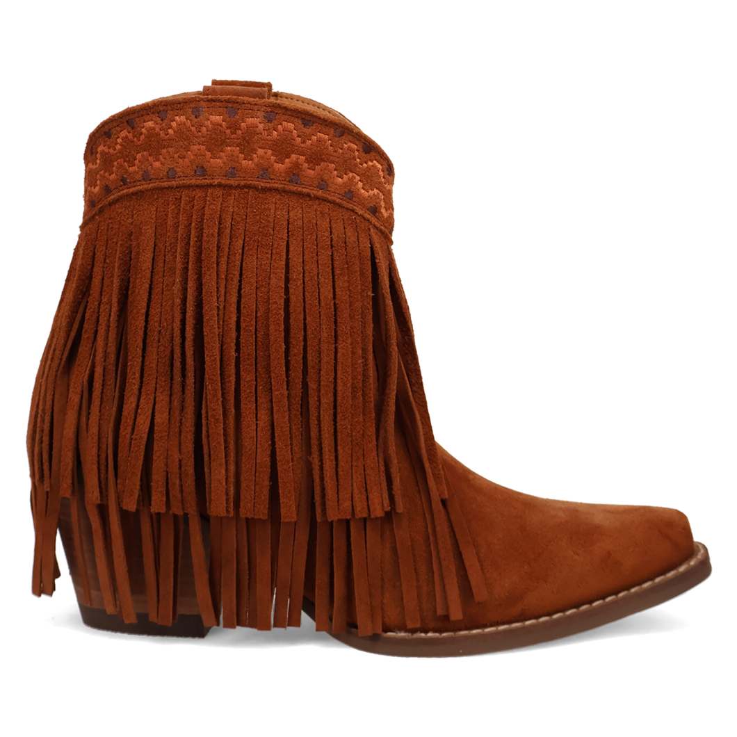 Dingo Women's Brown Suede Tapadero Snip Toe Bootie with Fringe