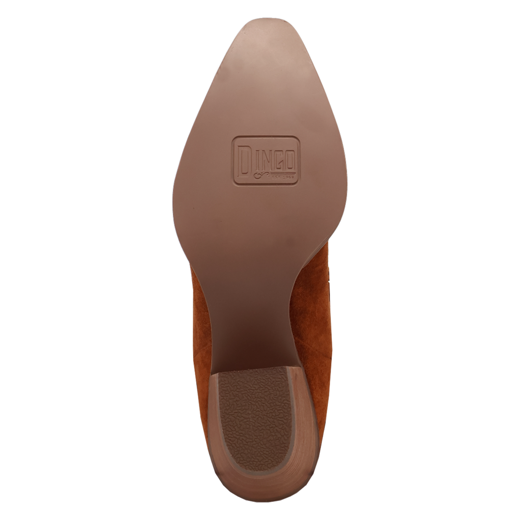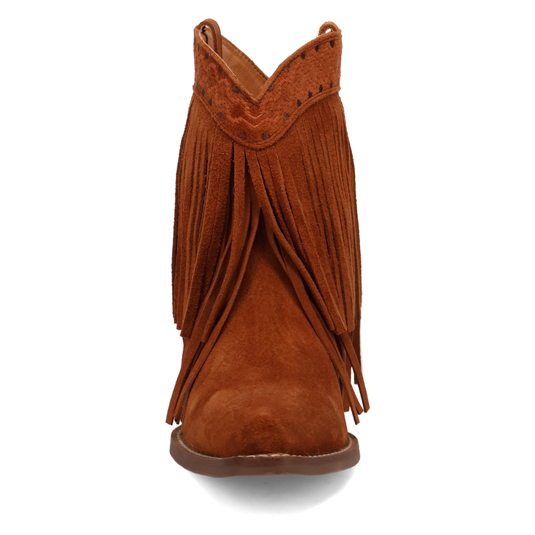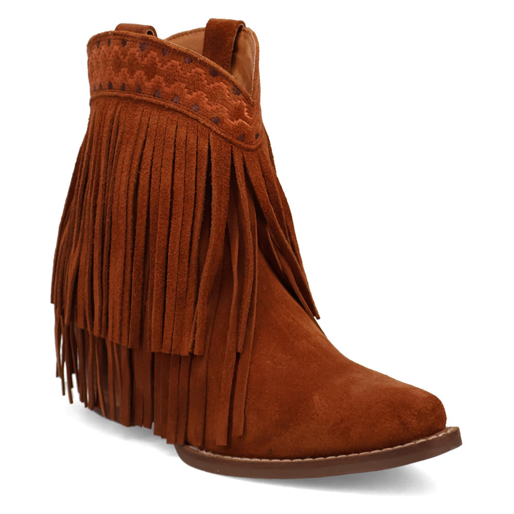 Dingo Women's Brown Suede Tapadero Snip Toe Bootie with Fringe
