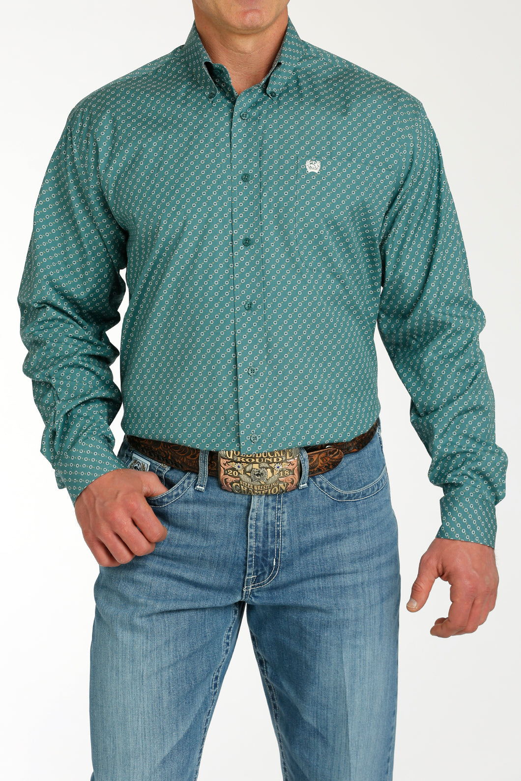 Cinch Green & White Geometric Print Button-Down Shirt for Men