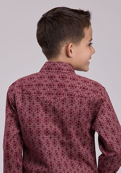 Roper Apparel Boys Red Vertical Aztec Print Western Snap Shirt