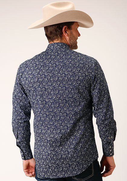 Roper Apparel Men's Navy/White Floral Print Snap Western Shirt