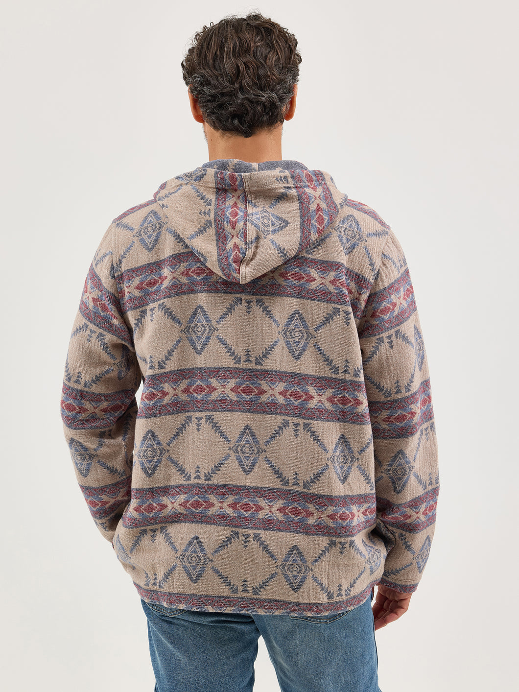 Wrangler Men's Taupe Southwestern Print 1/4 Zip Pullover Hoodie/Jacket