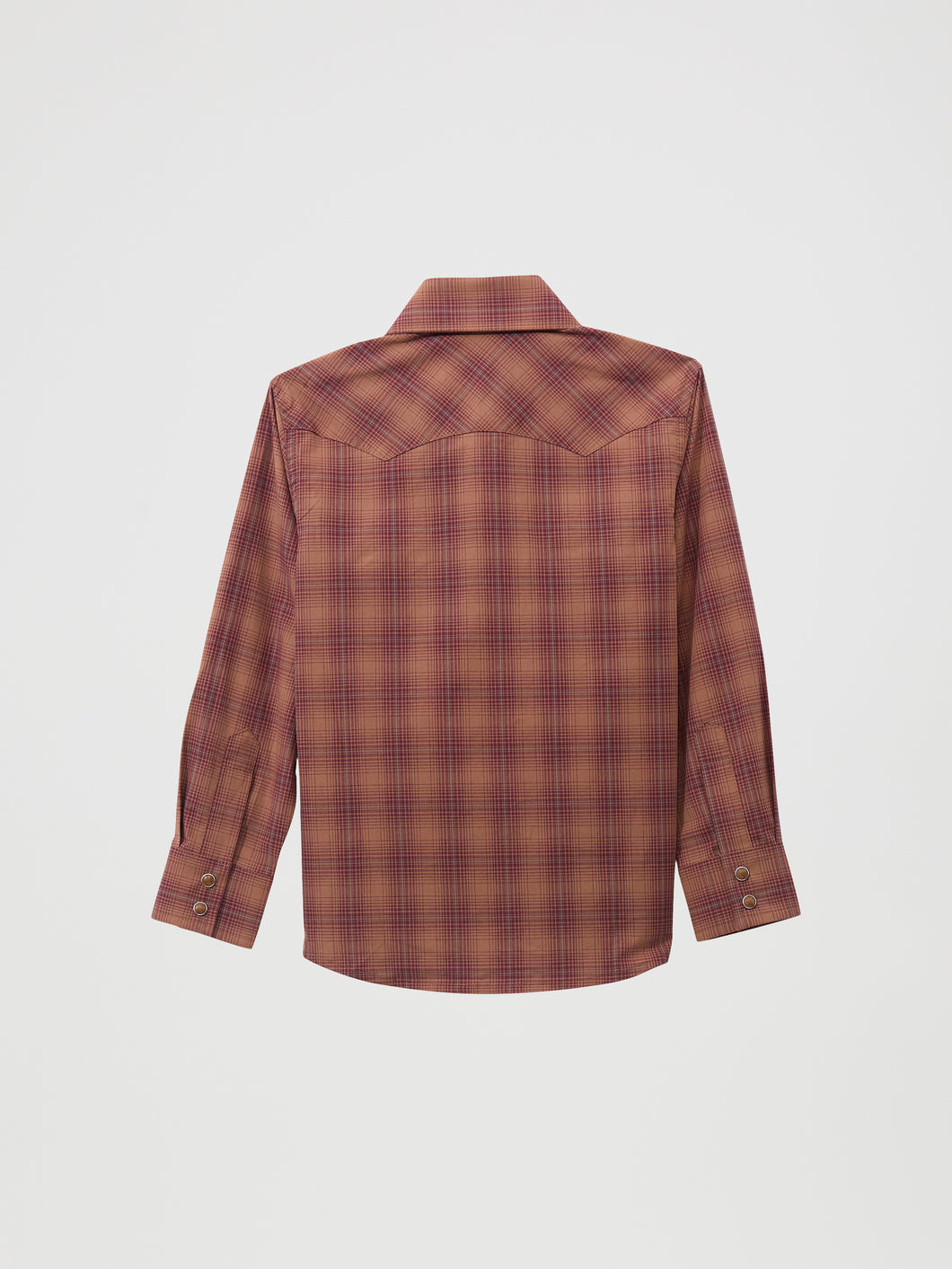 Wrangler Retro Boy's Rust Plaid Western Snap Shirt